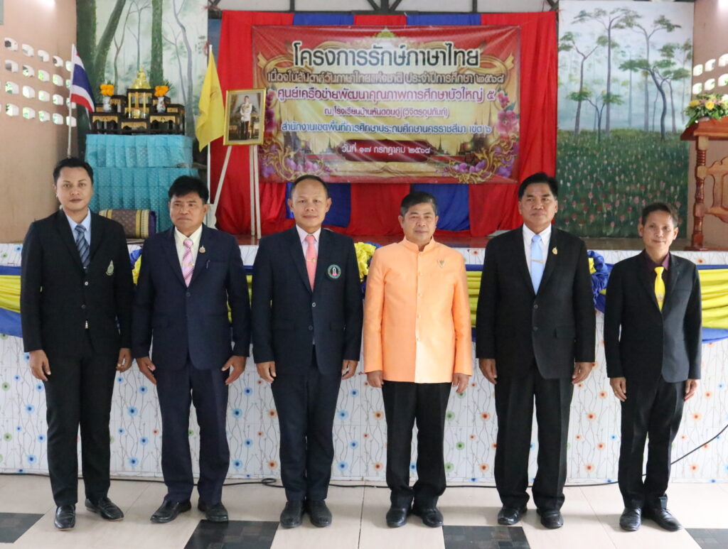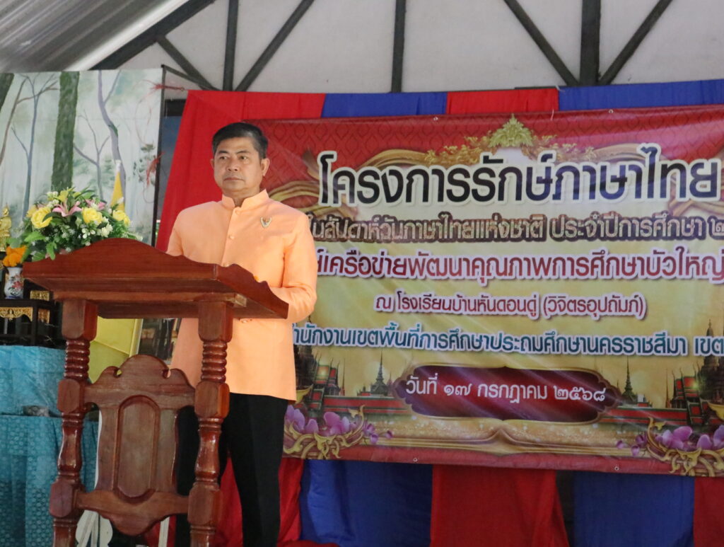 วันพฤหัสบดีที่ 17 กรกฎาคม 2568 เวลา 09.00 น. นายศุภพงษา จันทรังษ์ ผอ.สพป.นครราชสีมา เขต 6 เป็นประธานพิธีเปิดงานกิจกรรม “โครงการรักษ์ภาษาไทย” เนื่องในสัปดาห์ภาษาไทยแห่งชาติ ประจำปีการศึกษา 2568 ศูนย์เครือข่ายพัฒนาคุณภาพการศึกษาบัวใหญ่ 5 ณ โรงเรียนบ้านหันดอนดู่(วิจิตรอุปถัมภ์) อำเภอบัวใหญ่ จังหวัดนครราชสีมา