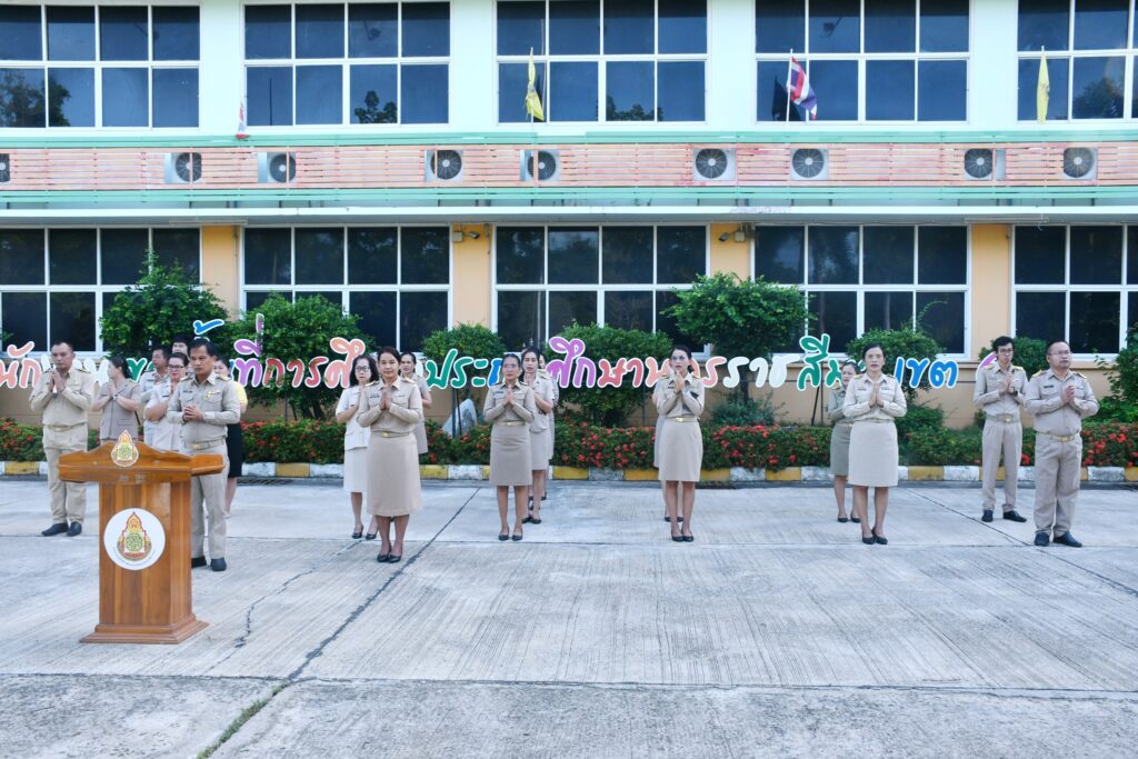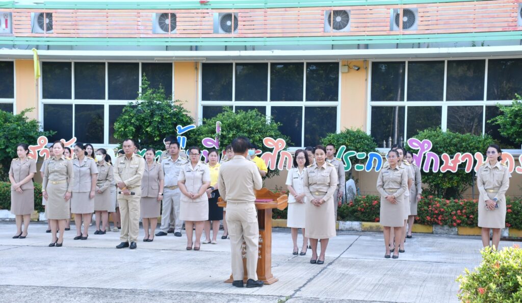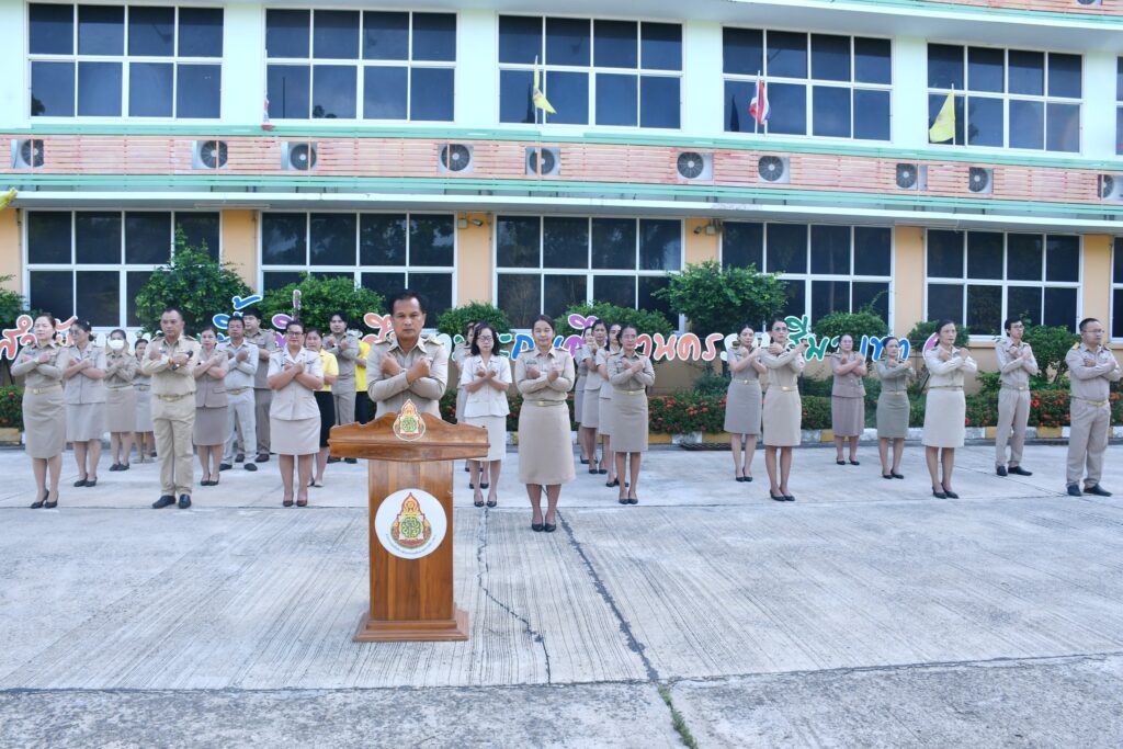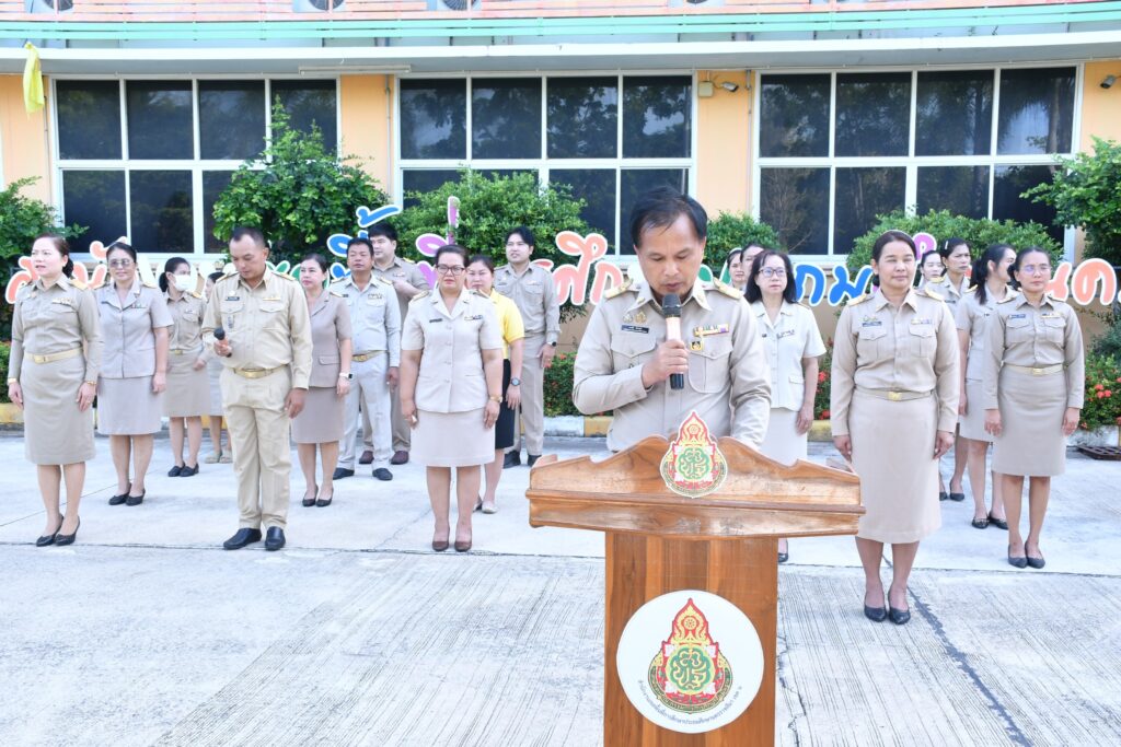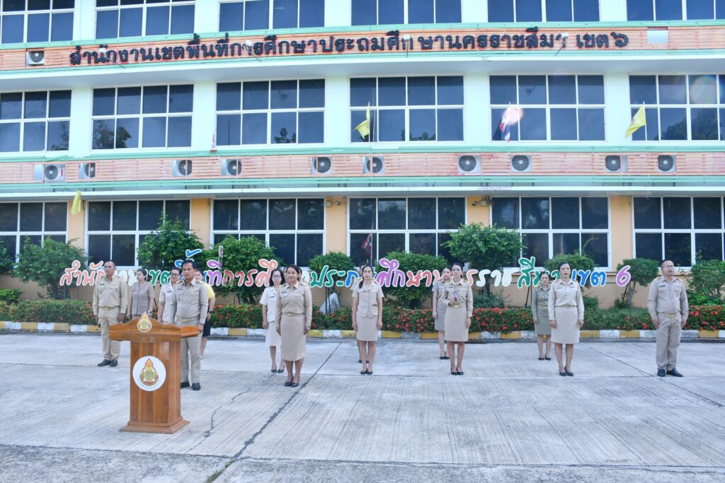 วันจันทร์ที่ 4 สิงหาคม 2568 เวลา 08.15 น. นายศุภพงษา จันทรังษ์ ผอ.สพป.นครราชสีมา เขต 6 มอบหมายให้ นายสมชัย นิยันตัง รอง ผอ.สพป.นครราชสีมา เขต 6 และนางจารุนันท์ นาคุณทรง รอง ผอ.สพป.นครราชสีมา เขต 6 นำคณะ ผู้อำนวยการกลุ่ม และบุคลากรทางการศึกษา จัดกิจกรรมเข้าแถวเคารพธงชาติ และประกาศเจตจำนงสุจริตในการบริหารงานสำนักงานเขตพื้นที่การศึกษาประถมศึกษานครราชสีมา เขต 6 มุ่งสู่การเป็นองค์กรธรรมาภิบาล และความโปร่งใส ตามโครงการเขตสุจริต ประจำเดือน สิงหาคม 2568 ณ เสาธงชาติหน้าอาคารสำนักงานเขตพื้นที่การศึกษาประถมศึกษานครราชสีมา เขต 6