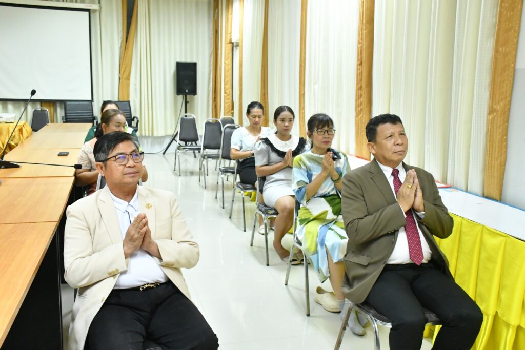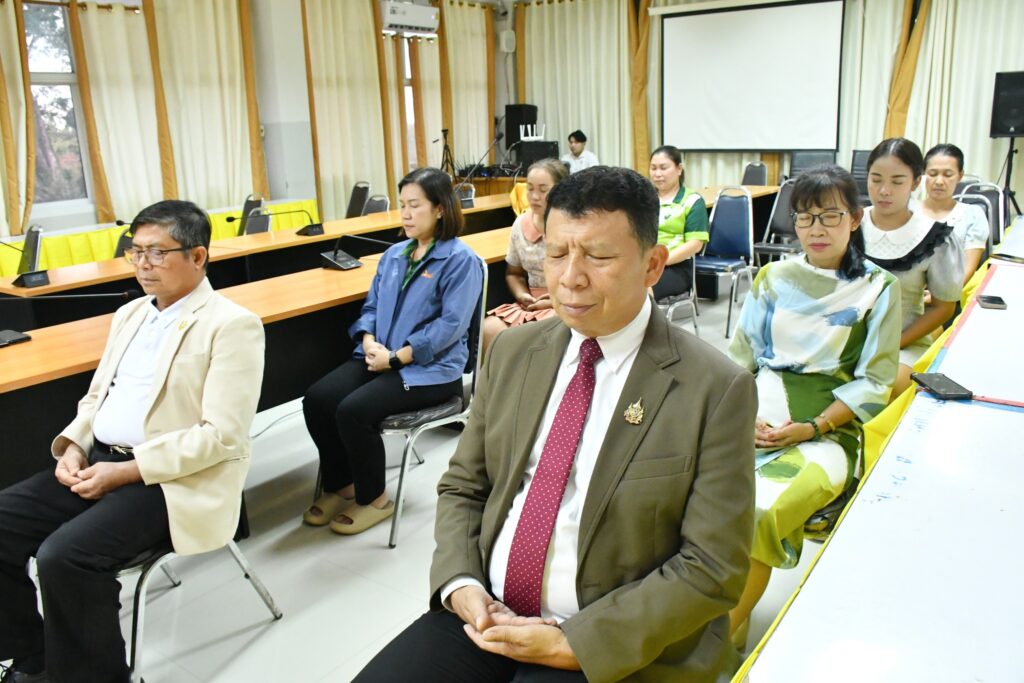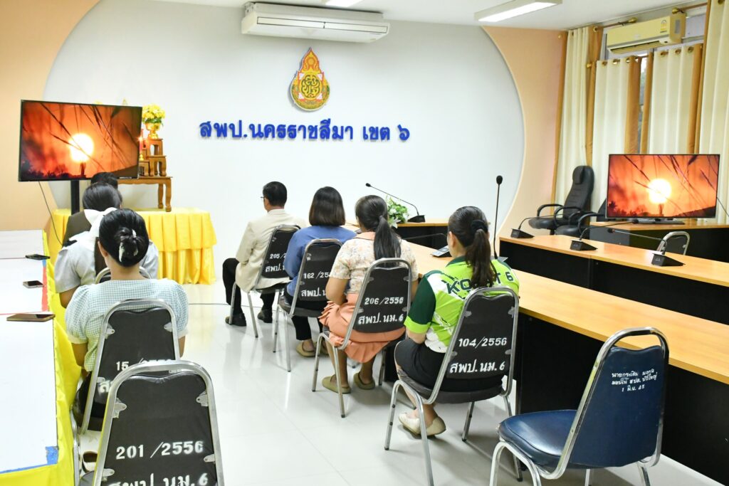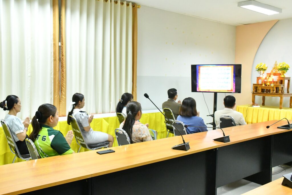 วันพฤหัสบดีที่ 7 สิงหาคม 2568 เวลา 15.30 น. นายศุภพงษา จันทรังษ์ ผอ.สพป.นครราชสีมา เขต 6 นำคณะข้าราชการ และบุคลากรทางการศึกษา สพป.นครราชสีมา เขต 6 ดำเนินการกิจกรรมสวดมนต์ทำวัตรเย็น นั่งสมาธิ เพื่อฝึกจิตภาวนาให้จิตนิ่ง พัฒนาปัญญา จิตใจผ่องใส มีสติปัญญาที่ดีในการทำงาน ประจำวันพฤหัสบดีที่ 7 สิงหาคม 2568 ณ ห้องประชุมวานิชอนุสรณ์ ชั้น 3 สพป.นครราชสีมา เขต 6