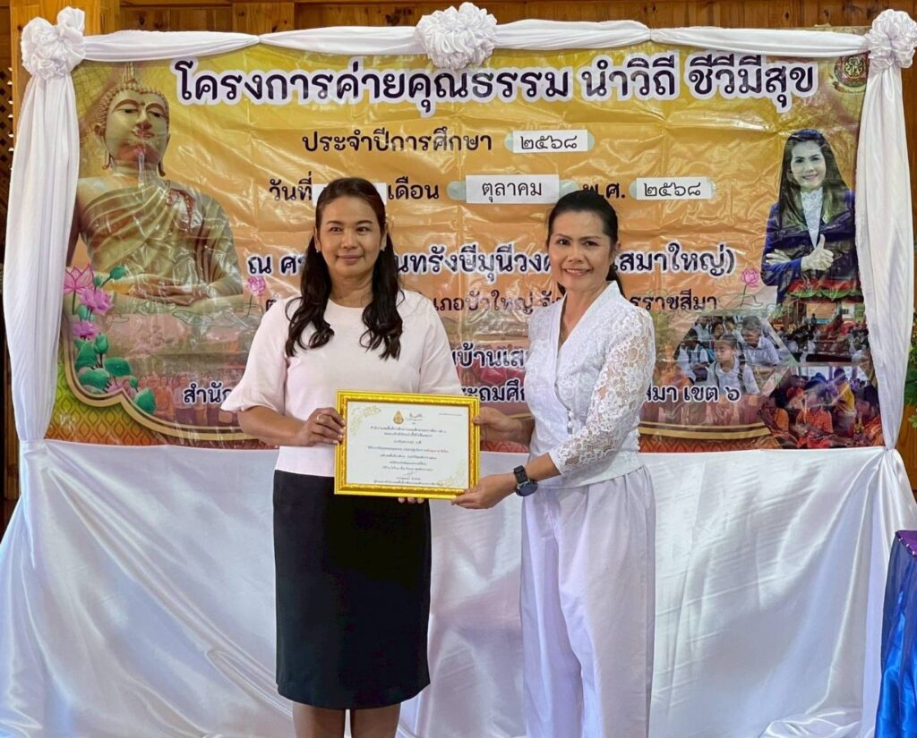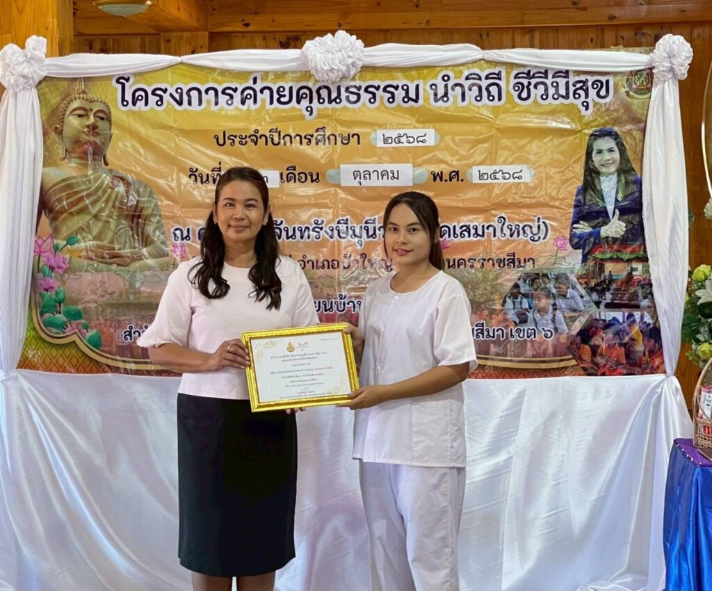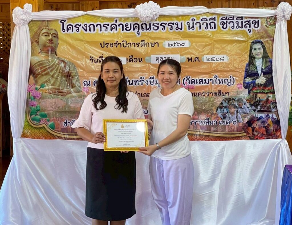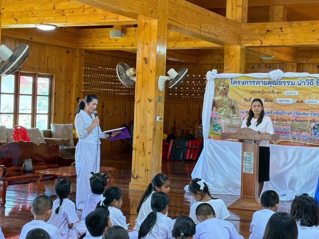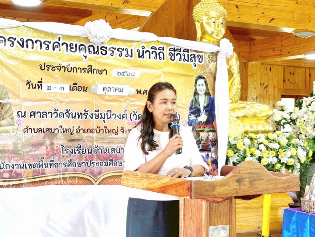 วันพฤหัสบดีที่ 2 ตุลาคม 2568 เวลา 13.30 น. นางจารุนันท์ นาคุณทรง รอง ผอ.สพป.นครราชสีมา เขต 6 เป็นประธานพิธีเปิด “โครงการค่ายคุณธรรม นำวิถี ชีวีมีสุข” ประจำปีการศึกษา 2568 โรงเรียนบ้านเสมา ระหว่างวันที่ 2-3 ตุลาคม 2568 ณ ศาลาวัดจันทรังษีมุนีวงศ์ (วัดเสมาใหญ่) อ.บัวใหญ่ จ.นครราชสีมา