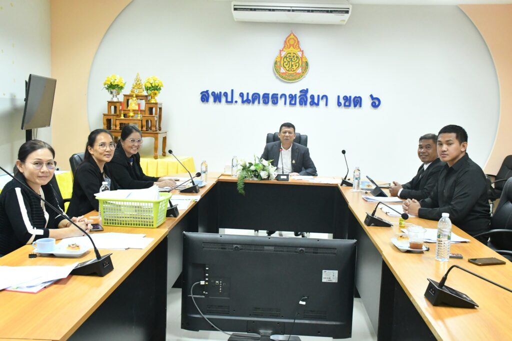 วันพฤหัสบดีที่ 6 พฤศจิกายน 2568 เวลา 13.30 น. นายธนภัทร สิริวาส รอง ผอ.สพป.นครราชสีมา เขต 6 รักษาราชการแทน ผอ.สพป.นครราชสีมา เขต 6 เป็นประธานการประชุมคณะกรรมการตรวจสอบคุณสมบัติผู้เสนอขอเครื่องราชอิสริยาภรณ์ ประจำปี 2569 ของข้าราชการและลูกจ้างประจำ สำนักงานเขตพื้นที่การศึกษาประถมศึกษานครราชสีมา เขต 6 สำนักงานคณะกรรมการการศึกษาขั้นพื้นฐาน กระทรวงศึกษาธิการ ณ ห้องประชุมวานิชอนุสรณ์ ชั้น 3 สพป.นครราชสีมา เขต 6