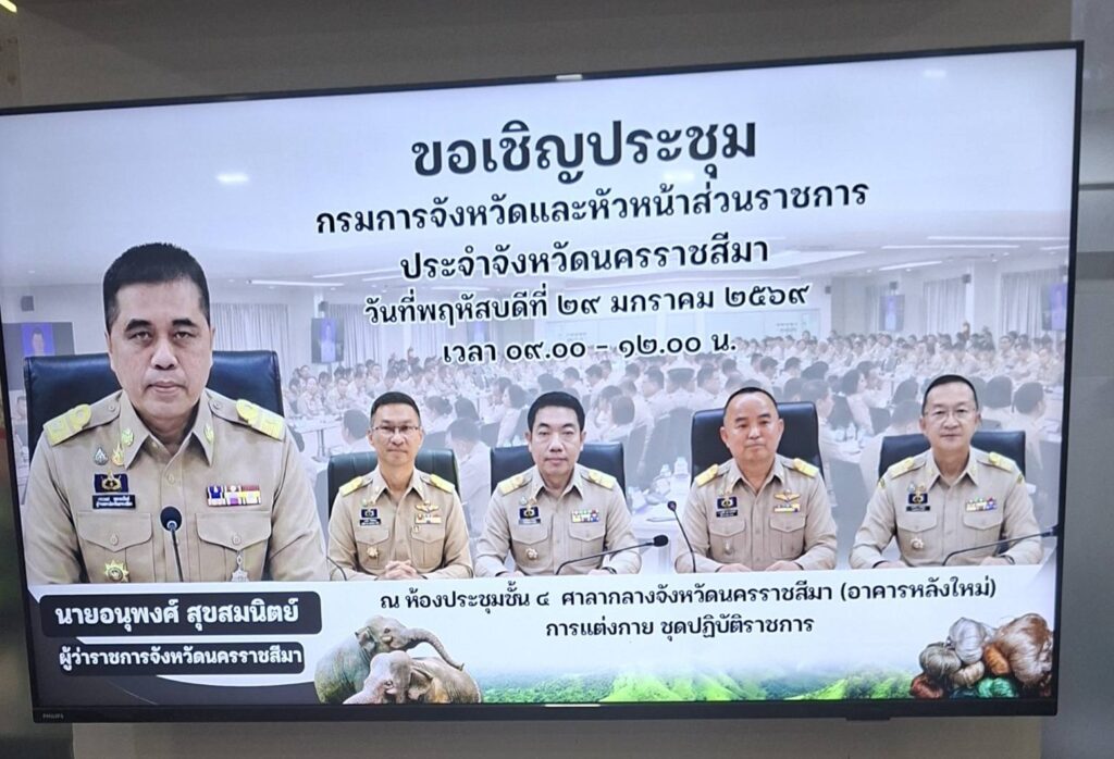 วันพฤหัสบดีที่ 29 มกราคม 2569 เวลา 09.00 น. นายภิญโญ กันหา ผอ.สพป.นครราชสีมา เขต 6 มอบหมายให้ นางจารุนันท์ นาคุณทรง รอง ผอ.สพป.นครราชสีมา เขต 6 เข้าร่วมประชุมกรมการจังหวัดและหัวหน้าส่วนราชการประจำจังหวัดนครราชสีมา ประจำเดือน มกราคม 2569 ณ ห้องประชุมชั้น 4 ศาลากลางจังหวัดนครราชสีมา (อาคารหลังใหม่) จังหวัดนครราชสีมา