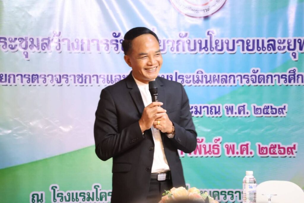 วันอังคารที่ 10 กุมภาพันธ์ 2569 เวลา 09.00 น. นายภิญโญ กันหา ผอ.สพป.นครราชสีมา เขต 6 มอบหมายให้ นางจารุนันท์ นาคุณทรง รอง ผอ.สพป.นครราชสีมา เขต 6 พร้อมด้วย นางสาวสุดารัตน์ วิกัยโกศล ผอ.กลุ่มนโยบายและแผน และนางประไพพรรณ์ แก้วดอนรี ศึกษานิเทศก์เข้าร่วมการประชุมสร้างการรับรู้เกี่ยวกับนโยบายและยุทธศาสตร์การศึกษา ตามนโยบายการตรวจราชการ และติดตามประเมินผลการจัดการศึกษาของกระทรวงศึกษาธิการ ประจำปีงบประมาณ พ.ศ. 2569 ณ โรงแรมโคราชโฮเต็ล ตำบลในเมือง อำเภอเมืองนครราชสีมา จังหวัดนครราชสีมา