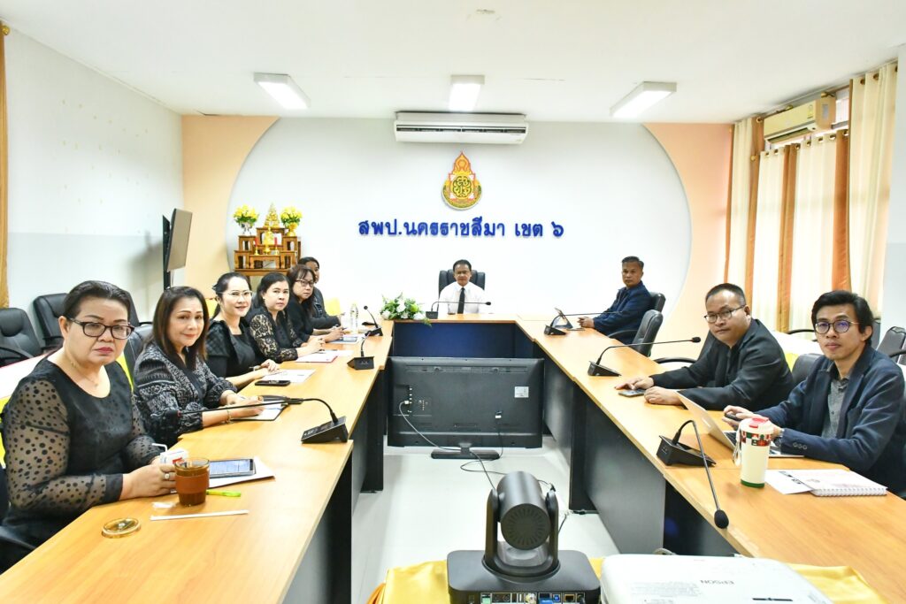 วันพฤหัสบดีที่ 26 กุมภาพันธ์ 2569 เวลา 08.00 น. นายภิญโญ กันหา ผอ.สพป.นครราชสีมา เขต6 พร้อมด้วย รอง ผอ.สพป.นครราชสีมา เขต 6 และผู้อำนวยการกลุ่ม/หน่วย ร่วมรับชม รายการพฤหัสเช้าข่าว สพฐ. ครั้งที่ 8 ประจำวันพฤหัสบดีที่ 26 กุมภาพันธ์ 2569 ผ่านระบบออนไลน์ ณ ห้องประชุมวานิชอนุสรณ์ ชั้น 3 สพป.นครราชสีมา เขต 6