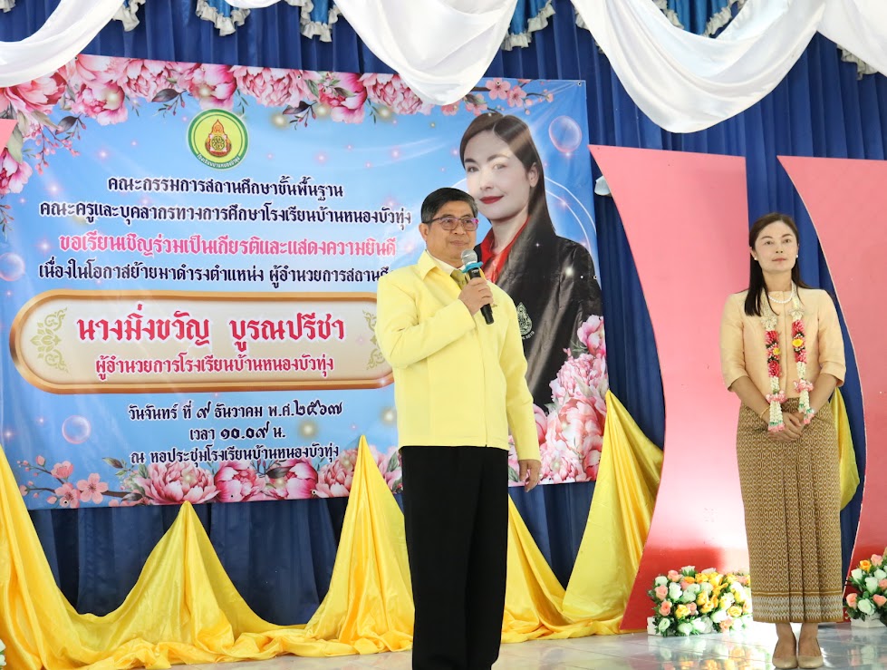 วันจันทร์ที่ 9 ธันวาคม 2567 เวลา 10.30 น นายศุภพงษา จันทรังษ์ ผอ.สพป.นครราชสีมา เขต 6 เป็นประธานในงานแสดงความยินดีกับ นางมิ่งขวัญ บูรณปรีชา ผอ.รร.บ้านสี่เหลี่ยม เนื่องในโอกาสย้ายไปดำรงตำแหน่ง ผอ.รร.บ้านหนองบัวทุ่ง ณ โรงเรียนบ้านหนองบัวทุ่ง อ.คง จ.นครราชสีมา