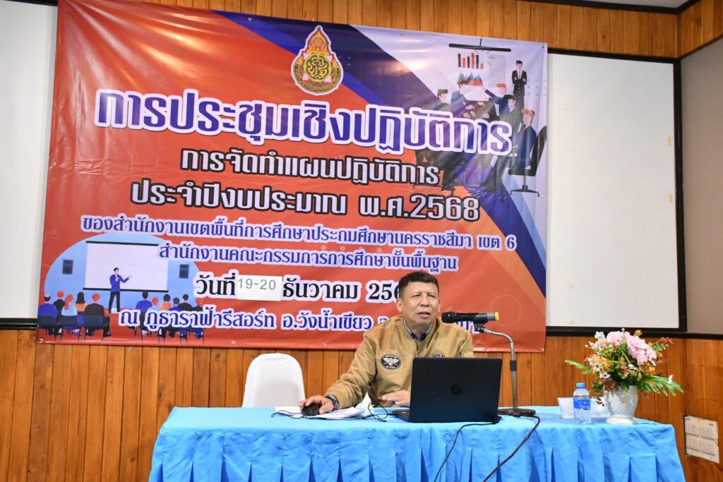 วันศุกร์ที่ 20 ธันวาคม 2567 เวลา 09.00 น. นายศุภพงษา จันทรังษ์ ผอ.สพป.นคราชสีมา เขต 6 มอบหมายให้ นายธนภัทร สิริวาส รอง ผอ.สพป.นครราชสีมา เขต 6 ดำเนินการการประชุมเชิงปฏิบัติการการจัดทำแผนปฏิบัติการ ประจำปีงบประมาณ พ.ศ. 2568 ของสำนักงานเขตพื้นที่การศึกษาประถมศึกษานครราชสีมา เขต 6 (วันที่สอง) ณ ภูธาราฟ้า รีสอร์ท อ.วังน้ำเขียว จ.นครราชสีมา