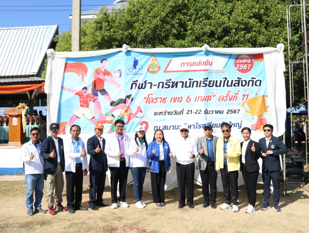 วันเสาร์ที่ 21 ธันวาคม 2567 เวลา 09.00 น. นายศุภพงษา จันทรังษ์ ผอ.สพป.นคราชสีมา เขต 6 เป็นประธานพิธีเปิดการจัดการแข่งขันกีฬา กรีฑานักเรียน ประจำปีการศึกษา 2567 “โคราช เขต 6 เกมส์” ครั้งที่ 11 โดยมีวัตถุประสงค์ใช้กีฬาเป็นวิธีการหนึ่งที่ช่วยพัฒนาทักษะการกีฬาให้กับนักเรียน ให้สามารถพัฒนาศักยภาพในด้านการกีฬาประเภทต่าง ๆ ส่งเสริมการใช้เวลาว่างให้เกิดประโยชน์ เป็นการส่งเสริมพัฒนาการทางด้านร่างกาย อารมณ์ สังคม และสติปัญญา ส่งเสริมความสามัคคีของหมู่คณะ และความสัมพันธ์ที่ดีให้แก่นักเรียน ณ สนามกีฬาโรงเรียนบัวใหญ่ อำเภอบัวใหญ่ จังหวัดนครราชสีมา ซึ่งจัดการแข่งขันระหว่างวันที่ 21-22 ธันวาคม 2567