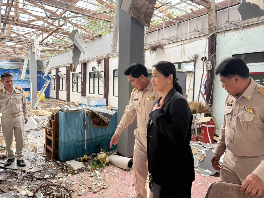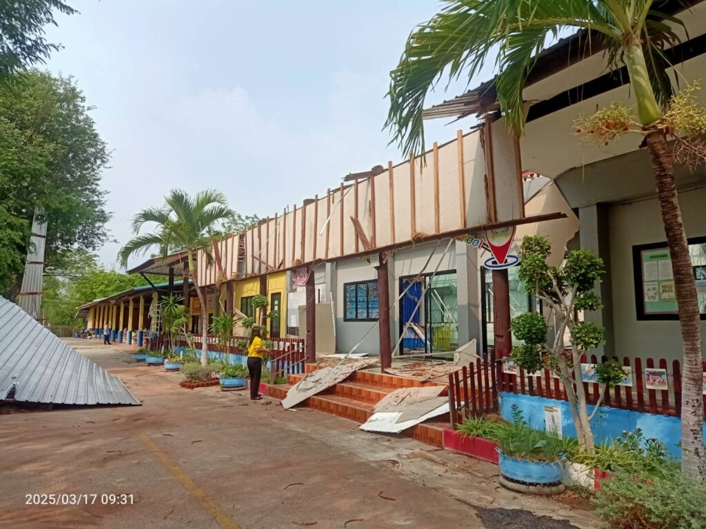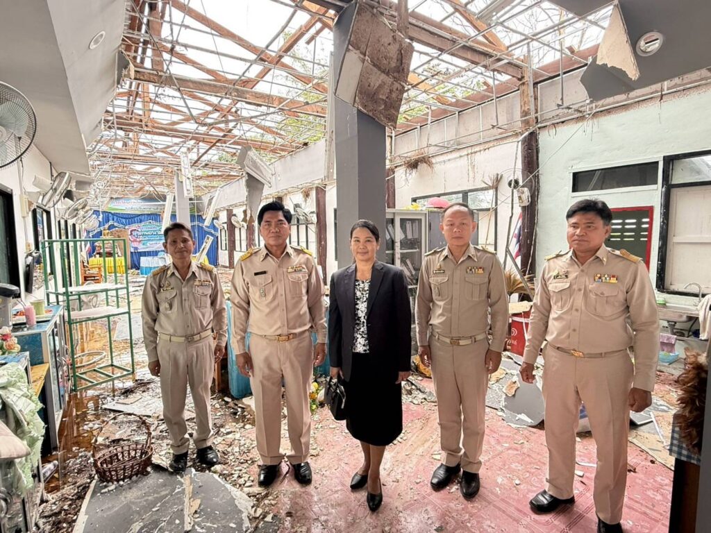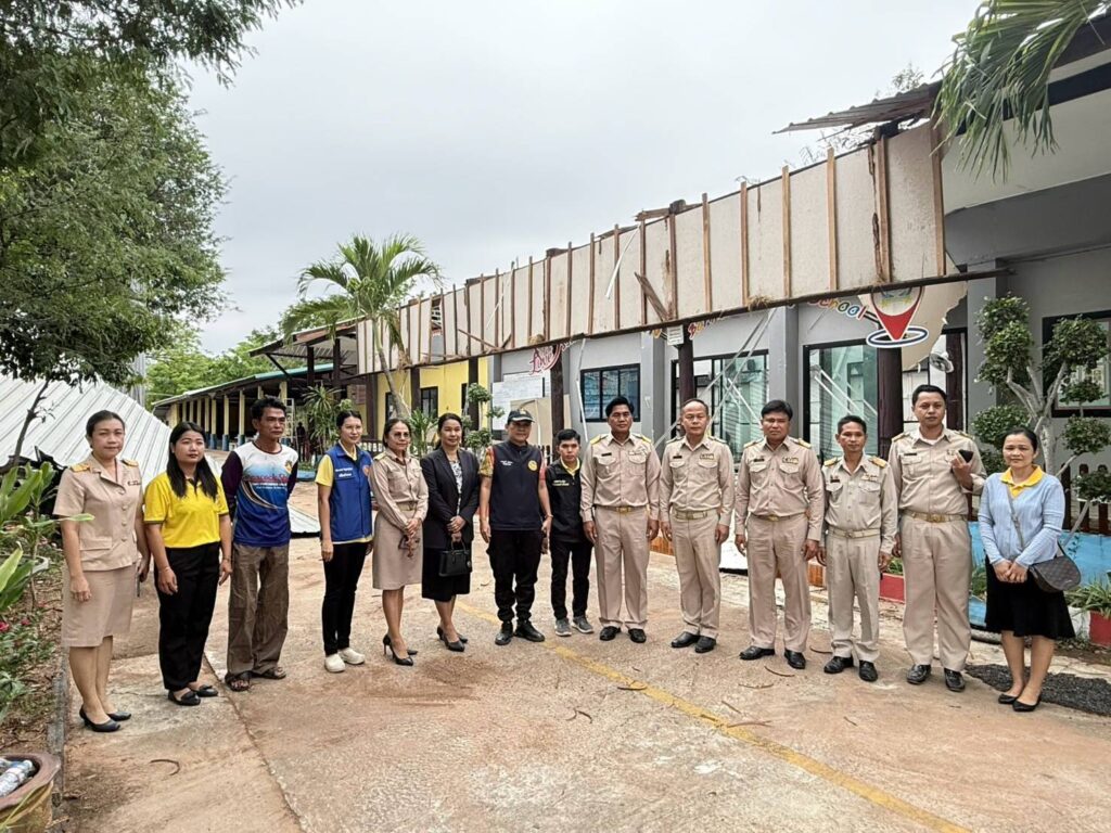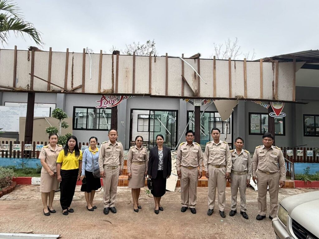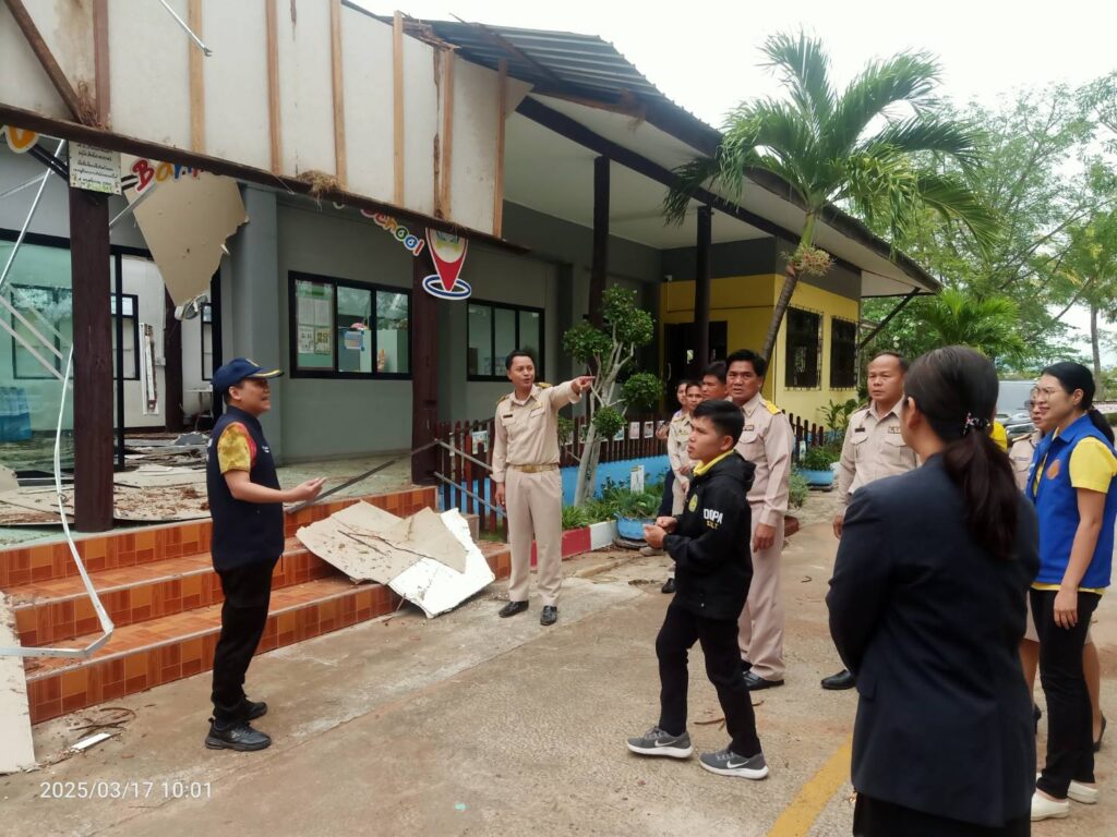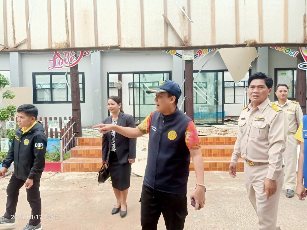 วันจันทร์ที่ 17 มีนาคม 2568 เวลา 09.30 น. นายศุภพงษา จันทรังษ์ ผอ.สพป.นครราชสีมา เขต 6 มอบหมายให้ นางจารุนันท์ นาคุณทรง รอง ผอ.สพป.นครราชสีมา เขต 6 พร้อมด้วย เจ้าหน้าที่กลุ่มนโยบายและแผน เจ้าหน้าที่พัสดุ และเจ้าหน้าที่งานสถานที่ กลุ่มอำนวยการ ออกสำรวจเหตุวาตภัย เกิดจากพายุลมแรง จนทำให้เกิดความเสียหายแก่อาคารเรียน ต้นไม้และสิ่งก่อสร้าง โรงเรียนบ้านโนนทองหลาง(ตุ๊ประสิทธิ์ประชาสรรค์) ต.โนนทองหลาง อ.บัวใหญ่ จ.นครราชสีมา เหตุเกิดเมื่อเย็นวันอาทิตย์ที่ 16 มีนาคม 2568 ที่ผ่านมา เพื่อดำเนินการสำรวจความเสียหาย และรายงานไปยัง สพฐ. เพื่อขออนุมัติงบประมาณในการซ่อมแซมตามระเบียบต่อไป โดยมี นายเดชฤทธิ์ ถิตย์ฉาย นายอำเภอบัวใหญ่ ลงพื้นที่สำรวจตรวจสอบความเสียหายในครั้งนี้ด้วย