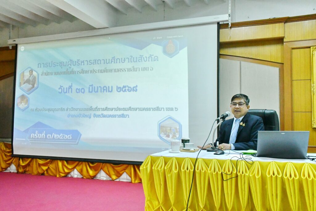 วันจันทร์ที่ 31 มีนาคม 2568 เวลา 09.00 น. นายศุภพงษา จันทรังษ์ ผอ.สพป.นครราชสีมา เขต 6 เป็นประธานการประชุมผู้บริหารสถานศึกษาในสังกัดสำนักงานเขตพื้นที่การศึกษาประถมศึกษานครราชสีมา เขต 6 ประจำเดือน มีนาคม 2568 ครั้งที่ 3/2568 เพื่อแจ้งข้อราชการ และมอบนโยบายจาก สพฐ. และกระทรวงศึกษาธิการ ในการปฏิบัติราชการ ณ ห้องประชุมปุณฑริก สพป.นครราชสีมา เขต 6 (หลังเดิม)