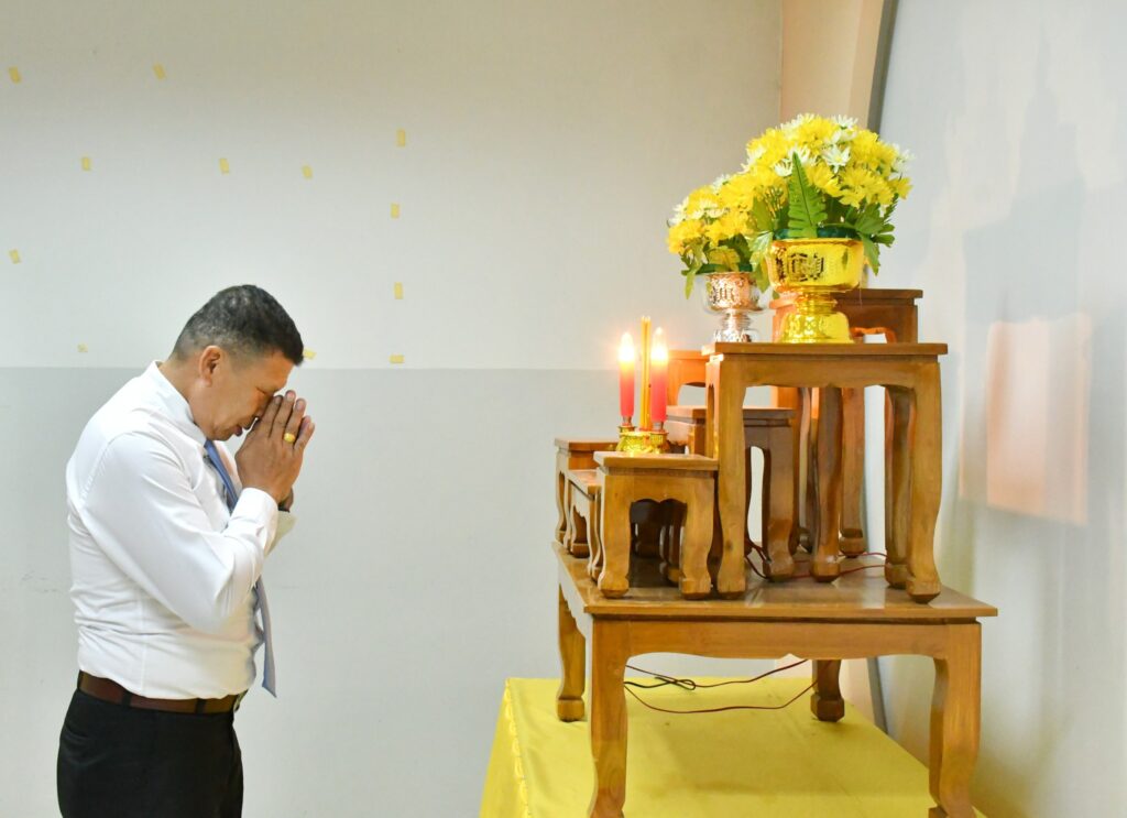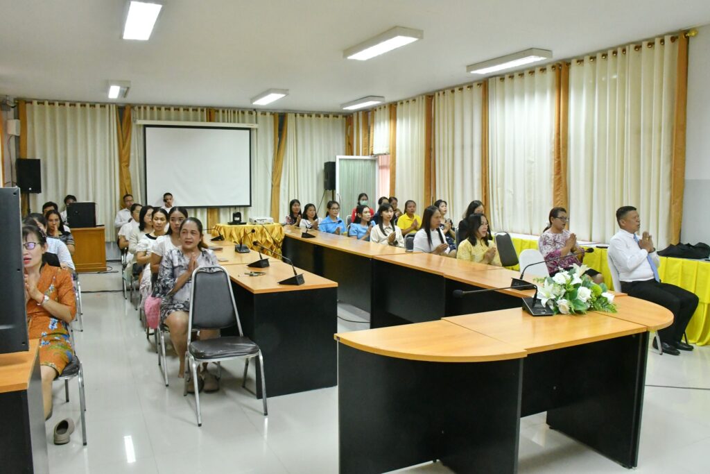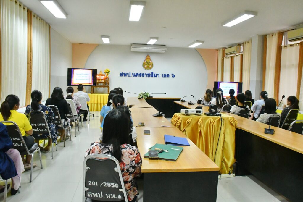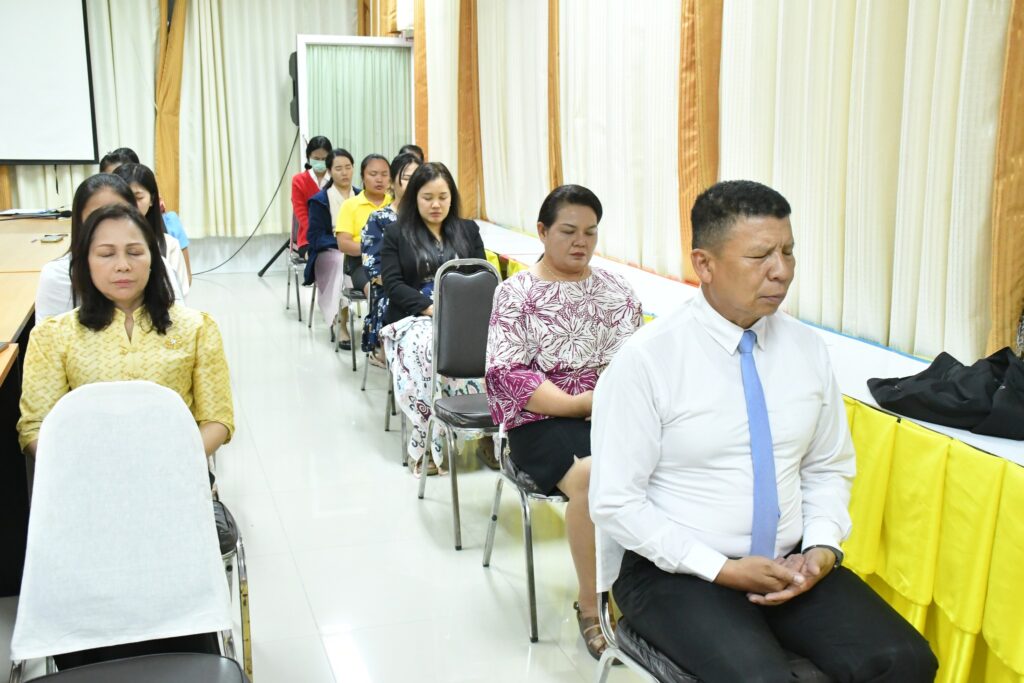 วันพฤหัสบดีที่ 3 เมษายน 2568 เวลา 15.30 น. นายศุภพงษา จันทรังษ์ ผอ.สพป.นครราชสีมา เขต 6 มอบหมายให้ นายธนภัทร สิริวาส รอง ผอ.สพป.นครราชสีมา เขต 6 นำคณะ ผู้อำนวยการกลุ่ม ข้าราชการ และบุคลากรทางการศึกษา สพป.นครราชสีมา เขต 6 ดำเนินการกิจกรรมสวดมนต์ทำวัตรเย็น นั่งสมาธิ เพื่อเป็นการฝึกจิตภาวนาให้จิตนิ่ง พัฒนาปัญญา ให้มีความรู้สึกสบายใจ จิตใจผ่องใส มีสติปัญญาที่ดีในการทำงาน ณ ห้องประชุมวานิชอนุสรณ์ ชั้น 3 สพป.นครราชสีมา เขต 6