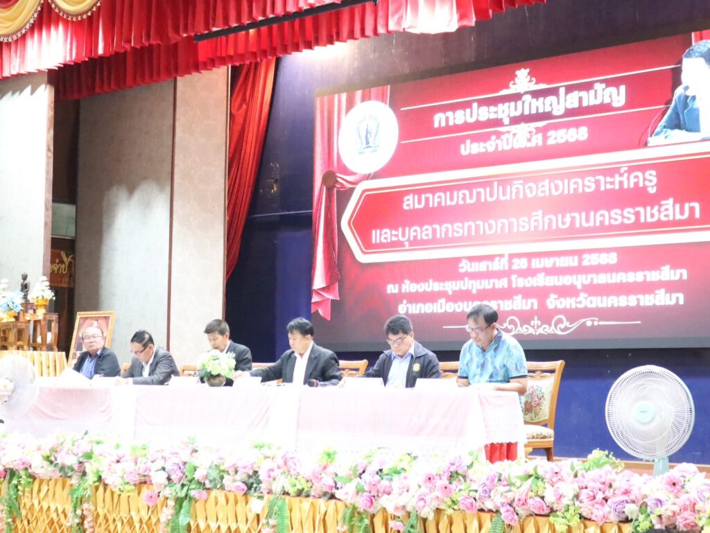 วันเสาร์ที่ 26 เมษายน 2568 เวลา 09.00 น. นายศุภพงษา จันทรังษ์ ผอ.สพป.นครราชสีมา เขต 6 เข้าร่วมประชุมใหญ่สามัญประจำปี พ.ศ. 2568 สมาคมฌาปนกิจสงเคราะห์ครูและบุคลากรทางการศึกษานครราชสีมา ณ ห้องประชุมปทุมมาศ โรงเรียนอนุบาลนครราชสีมา อำเภอเมืองนครราชสีมา จังหวัดนครราชสีมา